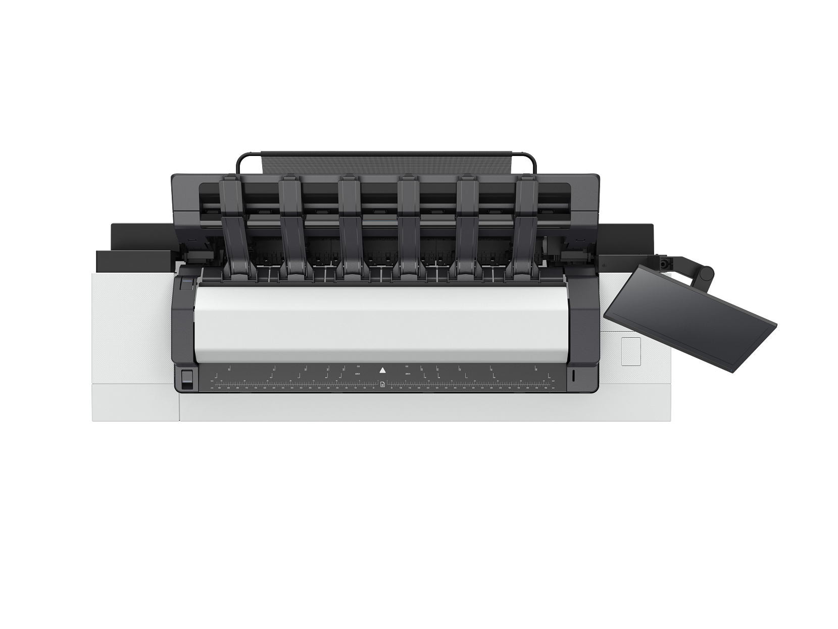 Gavetas com carregamento de rolo sem eixo, alimentação automática de rolo de carregamento frontal, empilhador de saída integrado, cortador horizontal automático